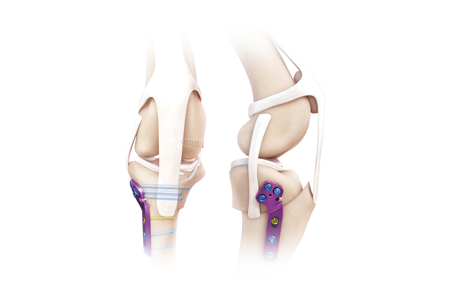 Stabilize the knee by mimicking the function of the torn cruciate ligament.